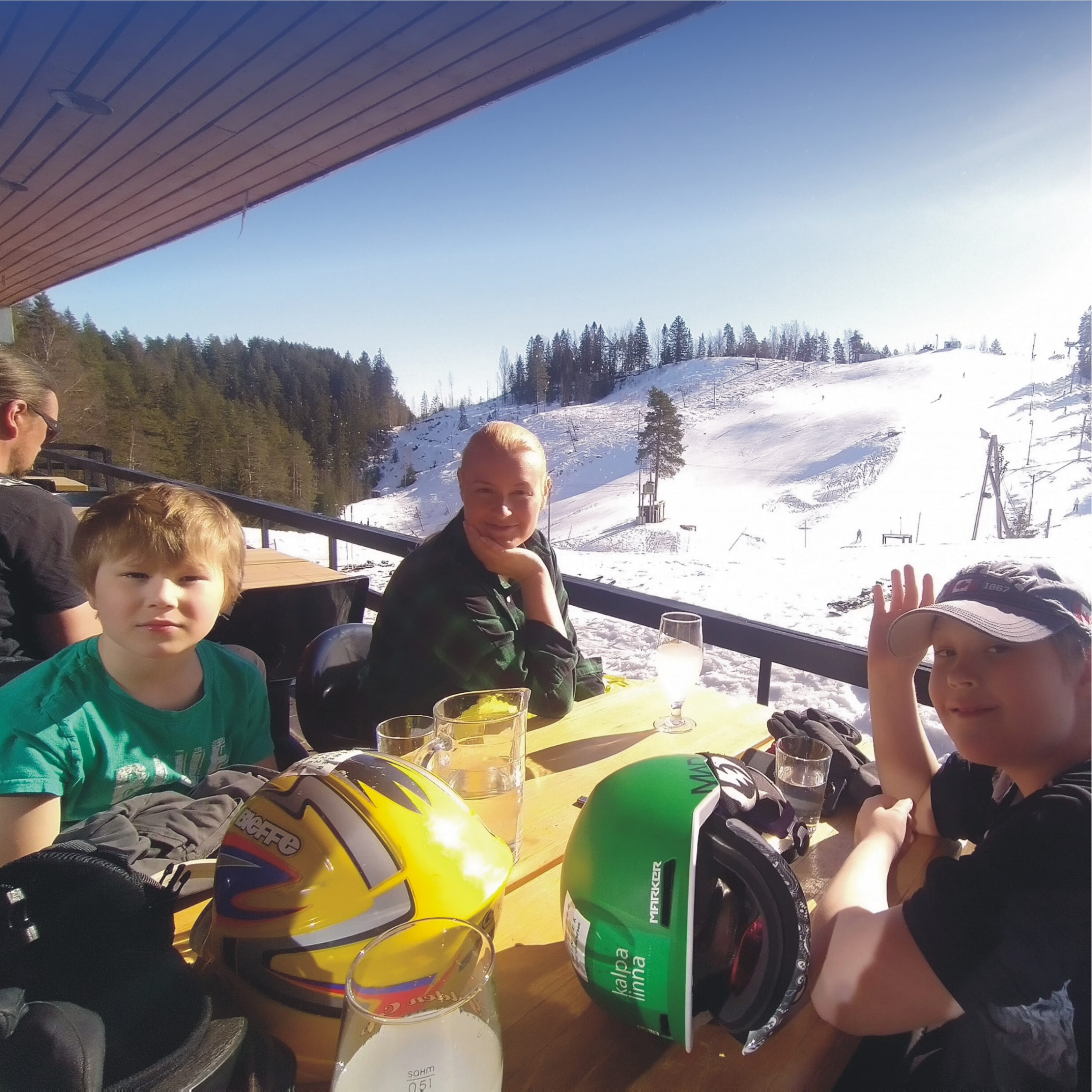 LaskiaispÀivÀnÀ alppihiihtokeskuksessa, vaikka ei lÀhtisikÀÀn rinteeseen, terassilla tai ravintolassa kuitenkin rinnetunnelmassa: